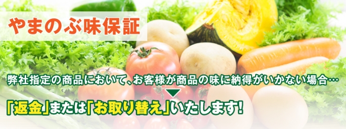 「やまのぶ 味保証」とは、弊社で販売してる全ての商品において、お客様が商品の味に納得いかない、お気に召さなかった場合、「返金」または「お取り替え」を『喜んで』させていただくシステムです。